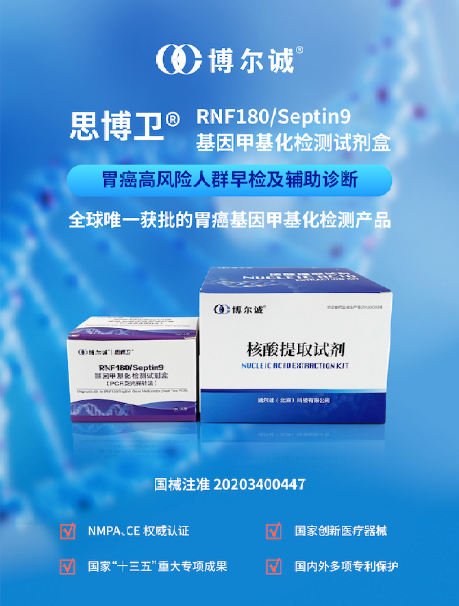 項(xiàng)目期間,博爾誠(chéng)將提供旗下消化道癌癥早檢系列產(chǎn)品,包括數(shù)萬(wàn)人份的“大便隱血和幽門螺旋桿菌抗原聯(lián)合檢測(cè)試劑盒(FIT-HP-Ag)”、“思博衛(wèi)®RNF180/Septin9基因甲基化檢測(cè)試劑盒”,共同推進(jìn)國(guó)家消化道腫瘤聯(lián)合篩查創(chuàng)新示范區(qū)項(xiàng)目開(kāi)展。